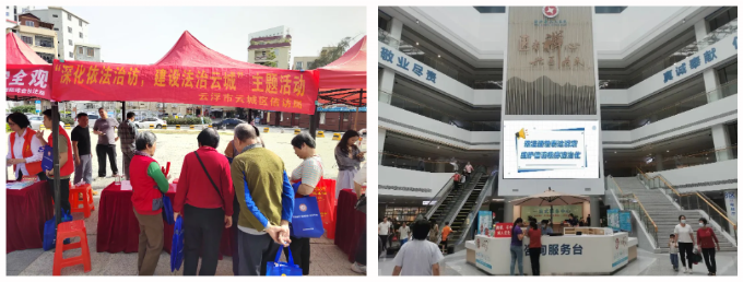 云浮市结合推进信访工作法治化,建立“市-县-镇-村”四级联动宣传体系,采用线上线下相结合的方式开展立体宣传。在线上,制作了宣传视频和音频,并在云浮电视台、电台等主流媒体及全市各地公众场所进行持续滚动播放。在线下,通过悬挂横幅、设立咨询台、发放宣传手册及宣传礼品等形式,累计开展宣传活动20场次,发放宣传资料3200份,参与群众3.6万人,现场工作人员面对面为群众解读《条例》,耐心解答群众提问。同时,积极推动宣传活动“进乡村、进社区、进学校、进企业、进单位”,实现宣传全覆盖。为提升信访干部专业素养,云浮市举办了全市信访系统信访工作法治化业务培训班,市委党校开设宣讲《条例》及信访工作法治化相关课程。