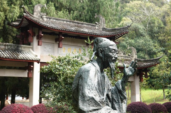 △武夷精舍门前的朱子雕像(总台央广记者潘毅拍摄)