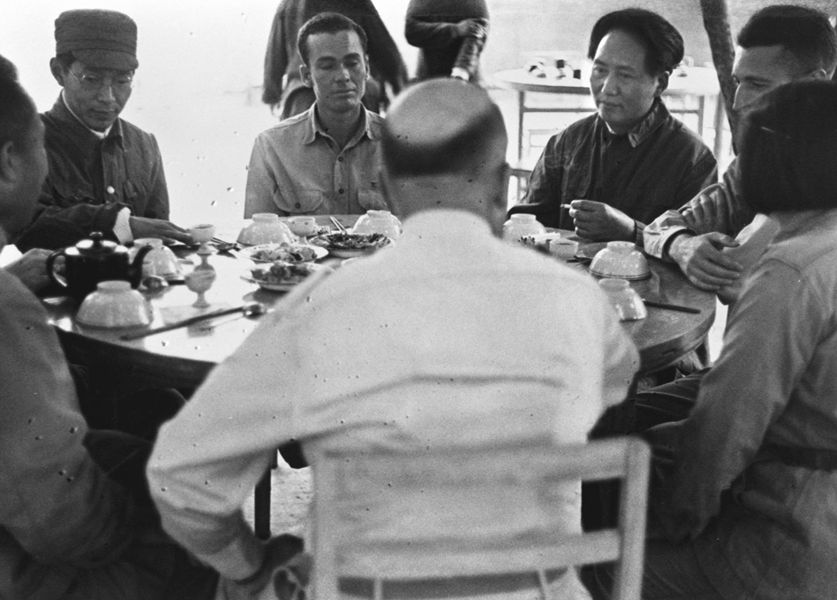 1944年6月,毛泽东设宴招待中外记者西北参观团。 新华社图片