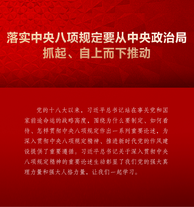 落实中央八项规定要从中央政治局抓起、自上而下推动